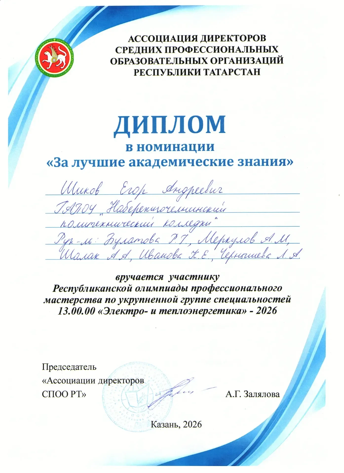 Шиков Егор — Диплом в номинации "За лучшие академические знания"!