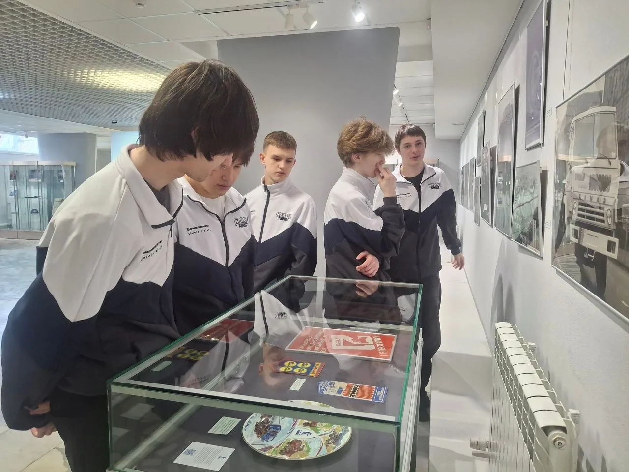 Это не была обычная экскурсия — это был диалог поколений. Экспозиция, которую увидели будущие техники, машиностроители и специалисты других ключевых для города направлений, показала им историю не через сухие даты и чертежи, а через искусство. Картины, графические работы, архивные фотографии создали мощный эмоциональный фон, повествующий о масштабе стройки, энтузиазме первых работников и индустриальной мощи автогиганта.
