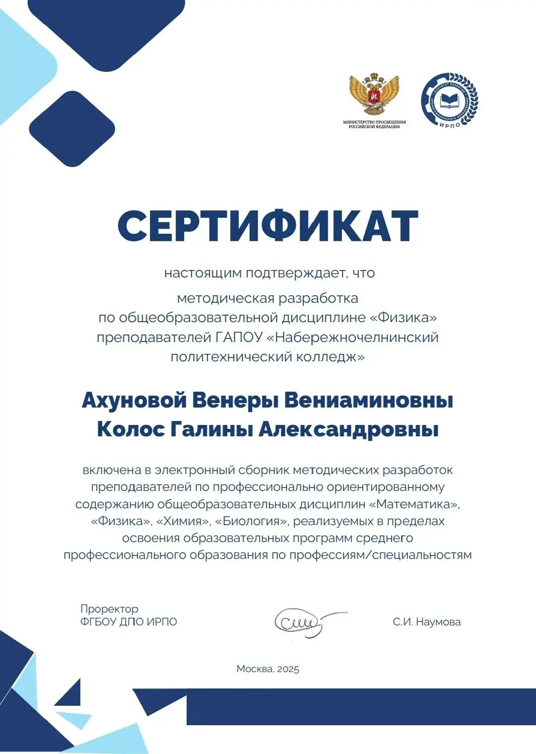 Рады поделиться отличной новостью: методические разработки наших преподавателей физики — Венеры Вениаминовны Ахуновой и Галины Александровны Колос — опубликованы в официальном республиканском сборнике, состоящем из трех томов!