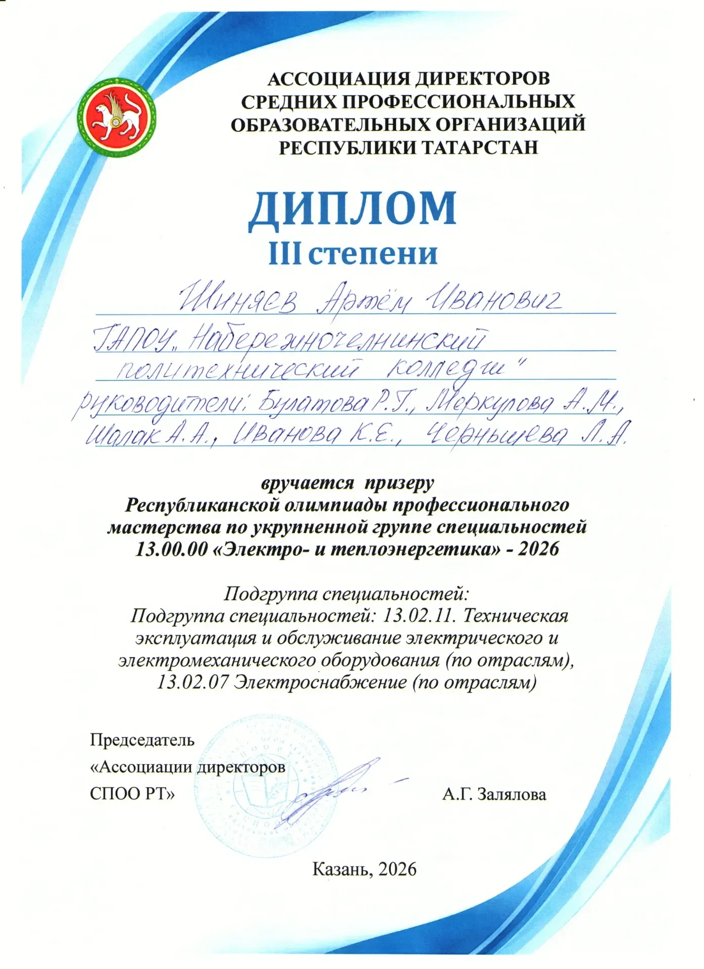 16 апреля на базе Казанского энергетического колледжа прошла Республиканская олимпиада профессионального мастерства по укрупненной группе специальностей 13.00.00 "Электро- и теплоэнергетика".