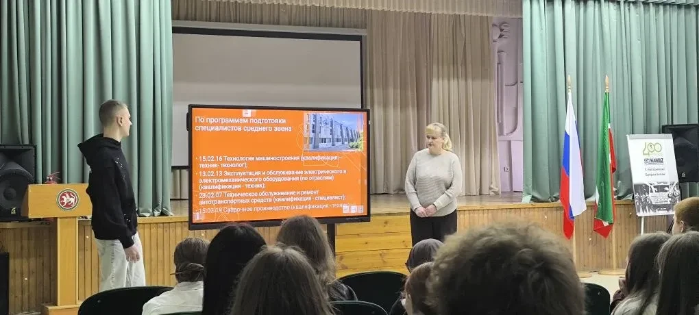 17-18 апреля 2026 года Набережночелнинский политехнический колледж (НПК), являющийся участником федерального проекта "Профессионалитет" с 2023 года, присоединился к всероссийской акции "Единый день открытых дверей". 17 апреля для учеников 9-х классов были организованы выездные экскурсии на ведущие производственные площадки предприятий-партнёров: ПАО "КАМАЗ", ООО "ЦФ КАМА" и АО "Камские электросети".