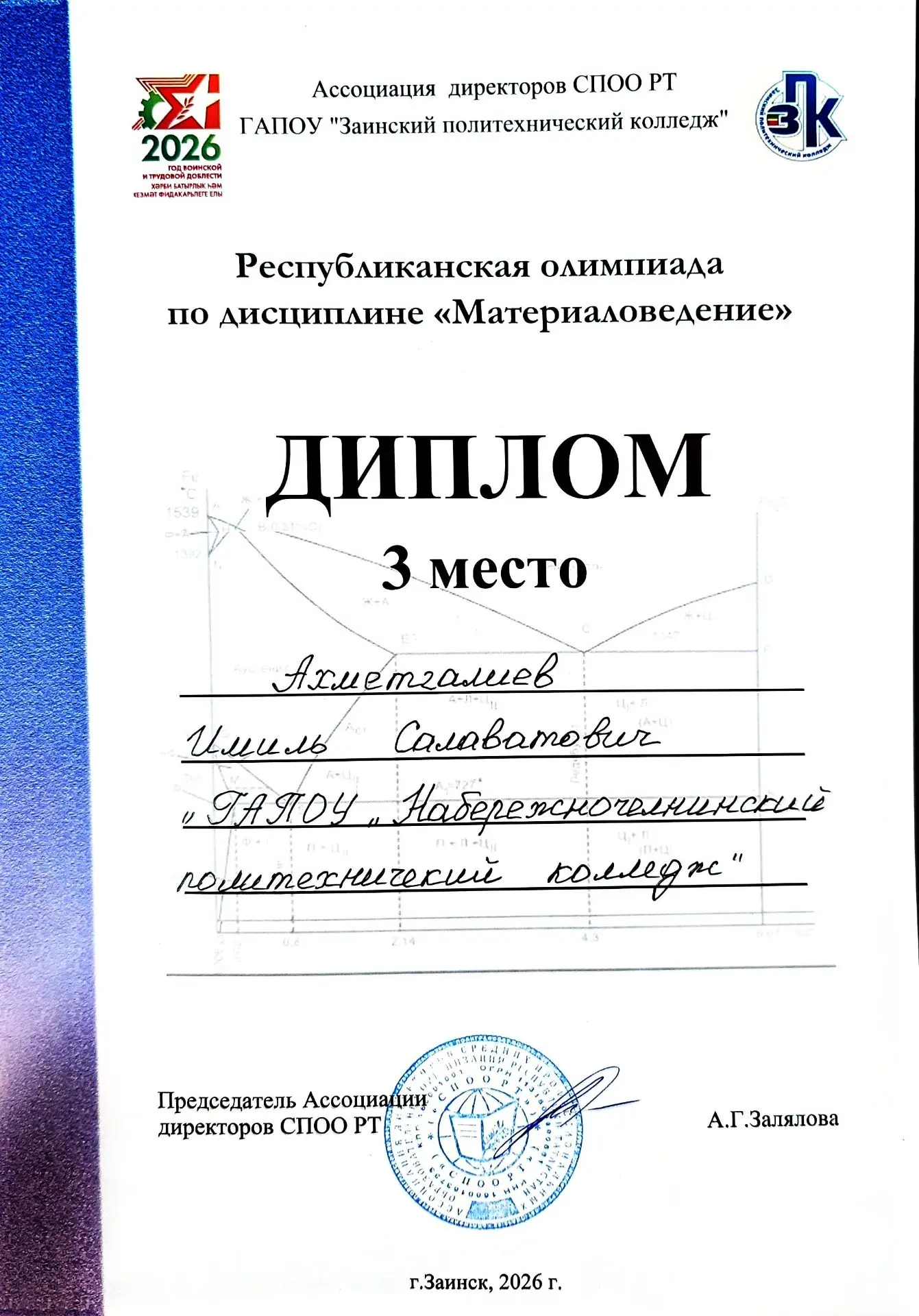 14 апреля на базе ГАПОУ "Заинский политехнический колледж" состоялась Республиканская олимпиада по дисциплине "Материаловедение" для студентов технических специальностей профессиональных образовательных организаций Республики Татарстан.