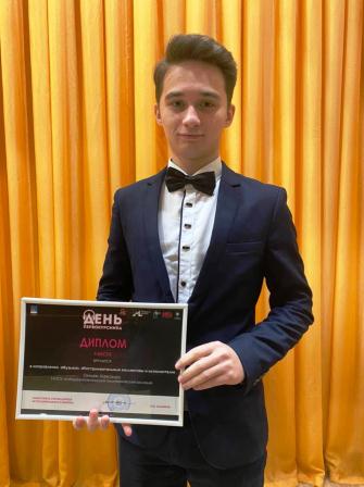 Наш колледж представлял студент-первокурсник Александр Свищев, который получил Диплом 2 степени в номинации "Инструментальные коллективы и исполнители". Поздравляем Александра от всей души.