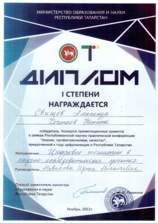 В первом этапе конкурса представлено 66 работ из 16 учебных заведений РТ. Проект, который представили на конкурс студенты нашего колледжа Свищев Александр и Кочетков Никита, прошёл в финальную часть конкурса, в которую были отобраны 22 работы.