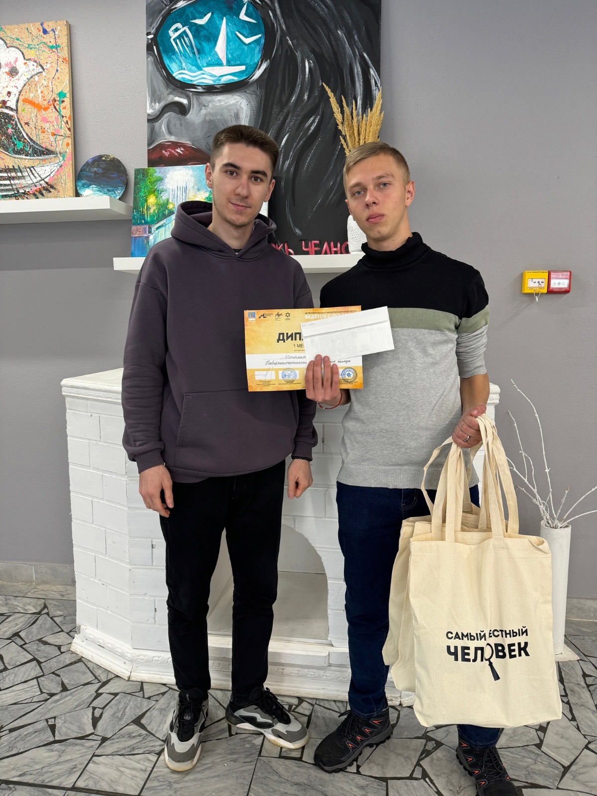 Команда нашего колледжа "Монолит" в составе капитана Иванова Д., и участников команды Дудина Е., Мухаметова Р., Тоцкого Е. четко выполнила все задания и стала лучшей, в итоге правильно определив главного коррупционера. Помимо диплома победителя студенты получили призы с символикой конкурса, а также солидный денежный приз.