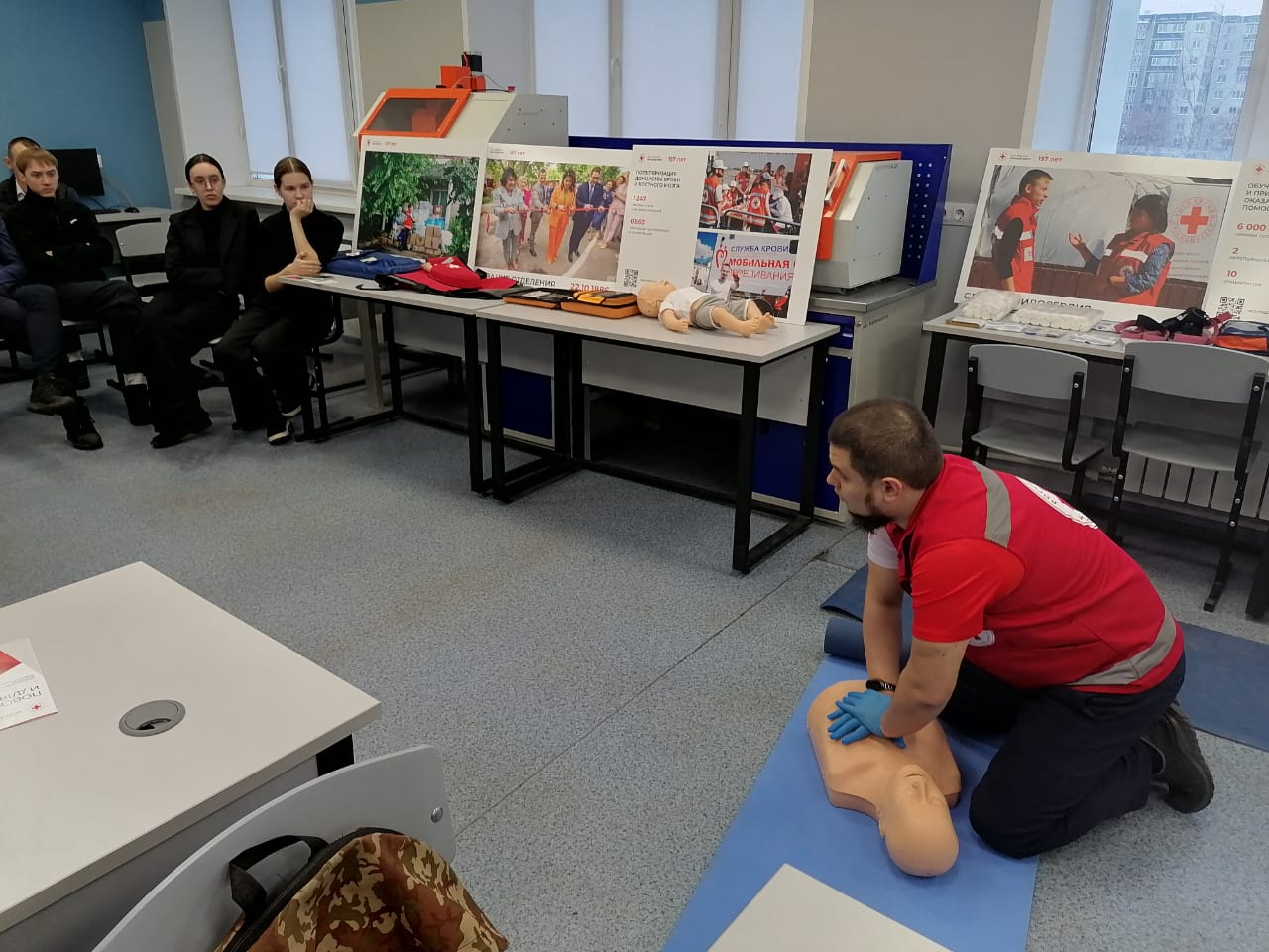 На мастер-классе инструкторы Красного Креста рассказали об алгоритме оказания первой помощи до приезда медицинских сотрудников, показали на манекенах и на помощниках как остановить кровотечение, сделать непрямой массаж сердца или искусственное дыхание, а также куда звонить и как передавать данные о пострадавшем.