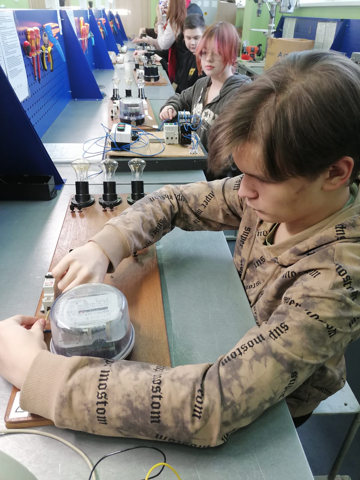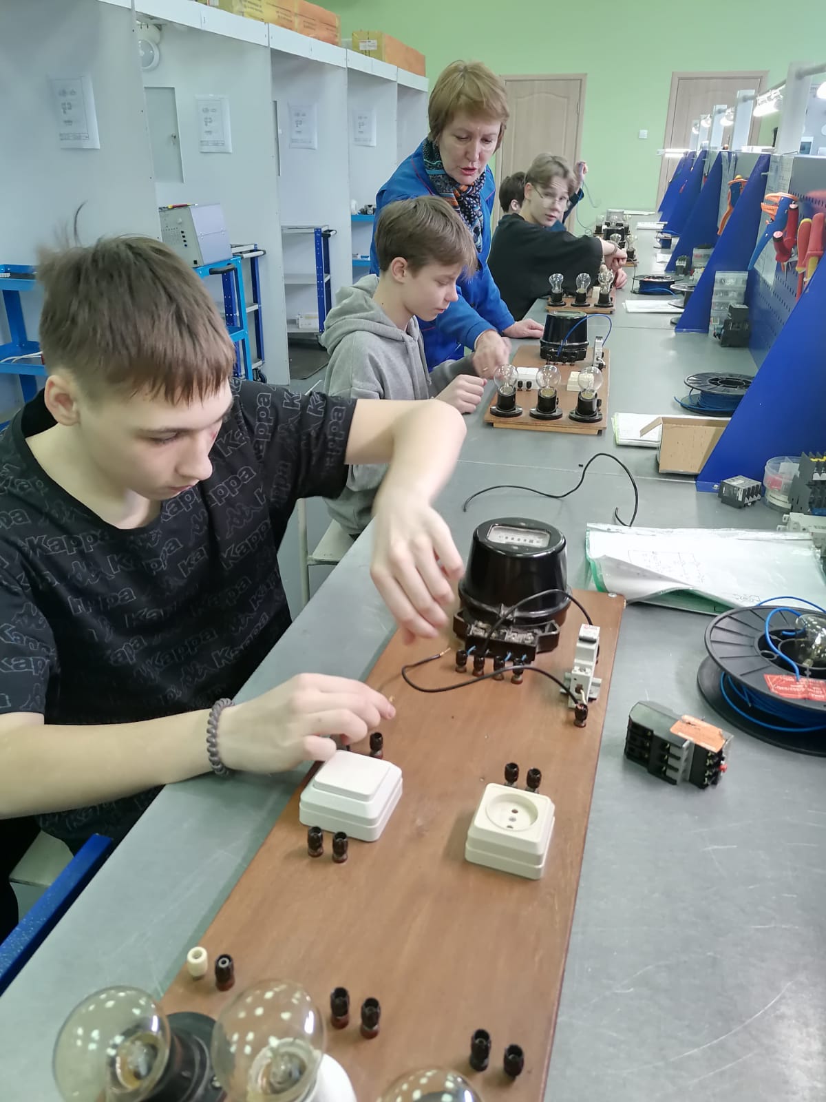 На профориентационном мероприятии «Профессиональные пробы», проведенном в НПК 13 февраля в рамках федерального проекта "Профессионалитет", ученики седьмых классов СОШ №15 имели уникальную возможность попробовать себя в роли юных электриков.