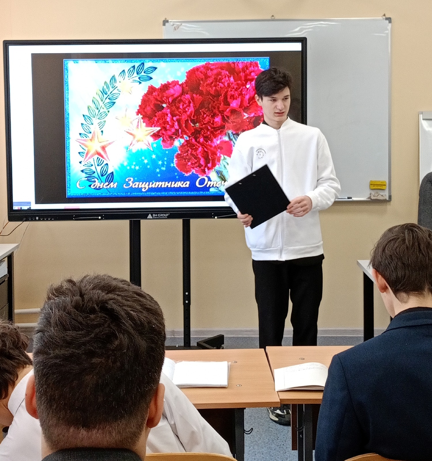 В преддверии празднования Дня защитника Отечества амбассадоры профессионалитета Набережночелнинского политехнического колледжа провели в группах 1-го курса поздравительные пятиминутки. Это получились короткие, но очень информативно насыщенные встречи.