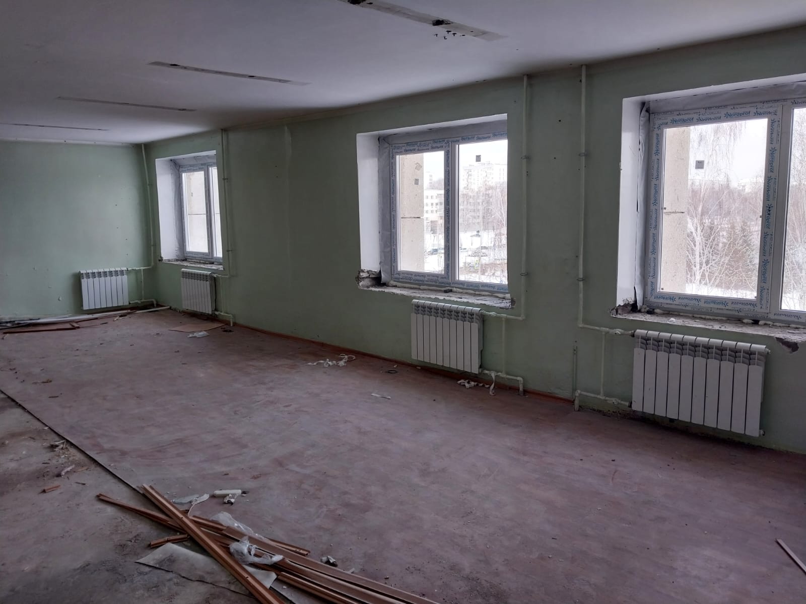 3 февраля стартовал грандиозный капитальный ремонт. В правом крыле здания заменены окна, идут демонтажные работы, включая стяжки, чтобы привести помещения в соответствие с требованиями пожарной безопасности.