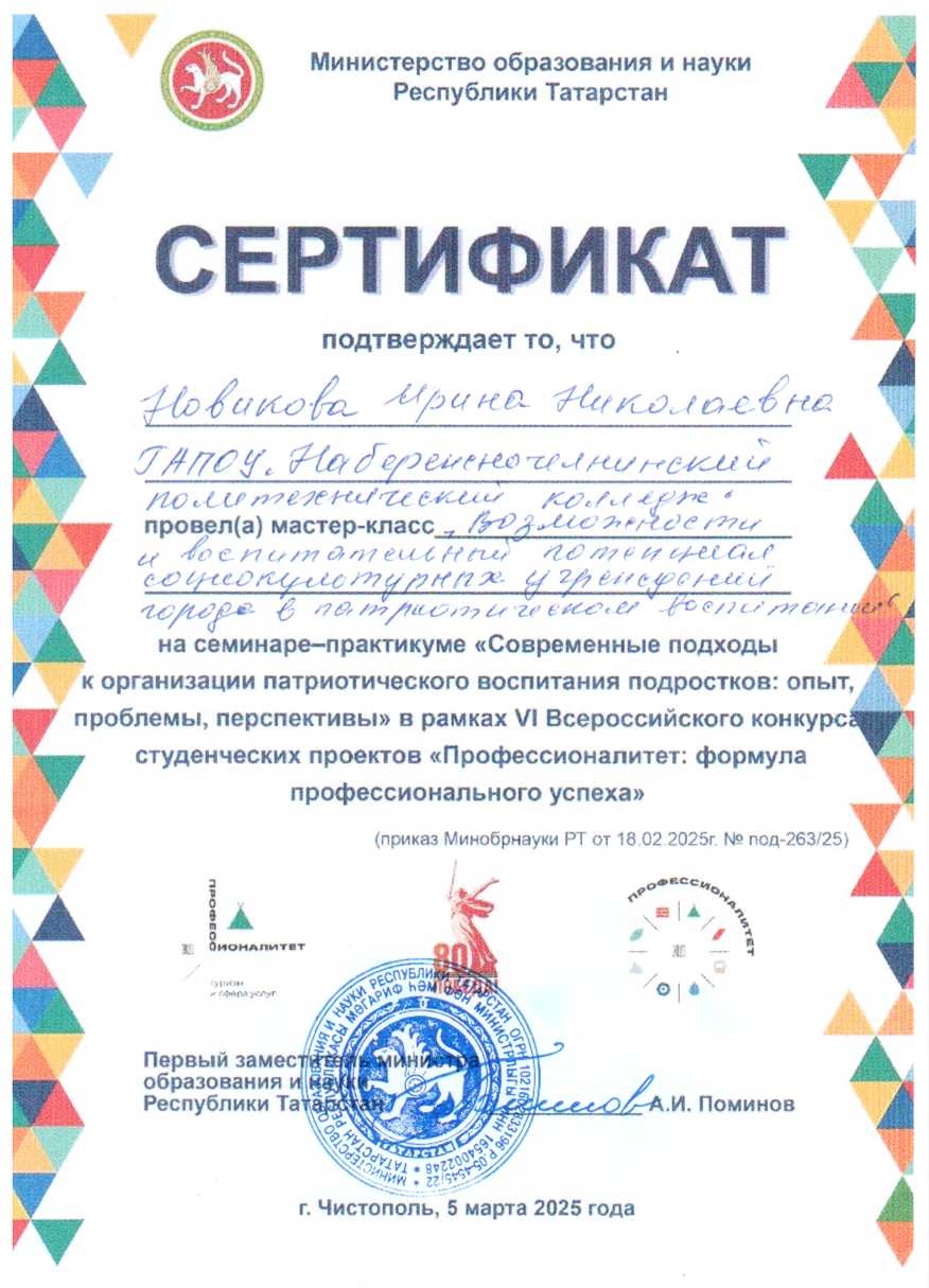 В рамках Конкурса для педагогических работников в очном формате был проведён семинар-практикум: "Современные подходы к организации патриотического воспитания подростков: опыт, проблемы, перспективы". Ирина Николаевна и Фарида Фаритовна в форме мастер-класса поделились с коллегами опытом своей работы.