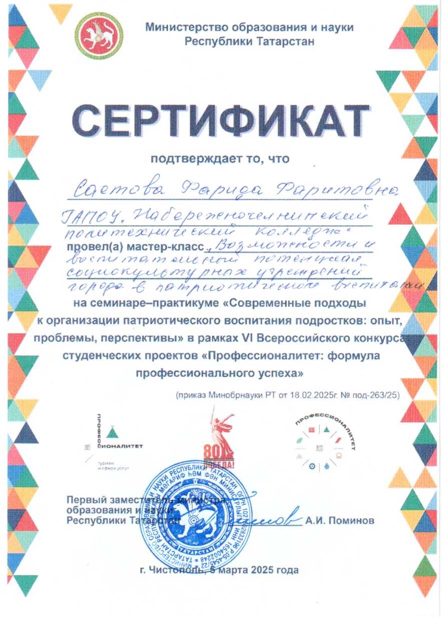 Студенты и преподаватели НПК приняли участие в VI Всероссийском конкурсе студенческих проектов "Профессионалитет: формула профессионального успеха". Он состоялся 5 марта на базе ГАПОУ "Чистопольский сельскохозяйственный техникум имени Г.И. Усманова".