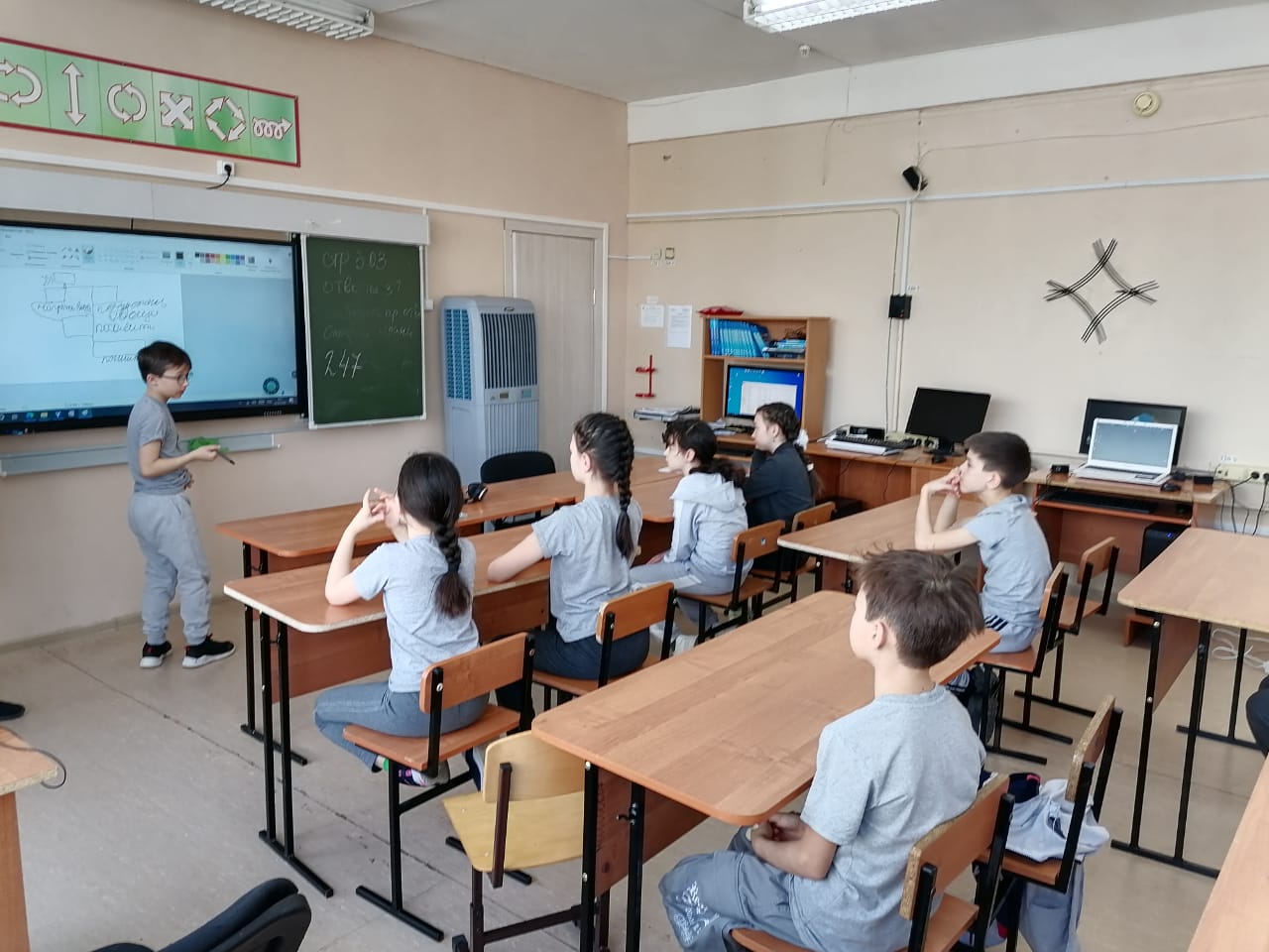 Кирилл Рифкатович Загидуллин объяснил, как алгоритмы присутствуют в нашей повседневной жизни, используя в качестве примера кулинарные рецепты. Каждая подгруппа выбирала блюда и «готовила» их, обсуждая пошаговые действия и составляя блок-схемы алгоритмов.