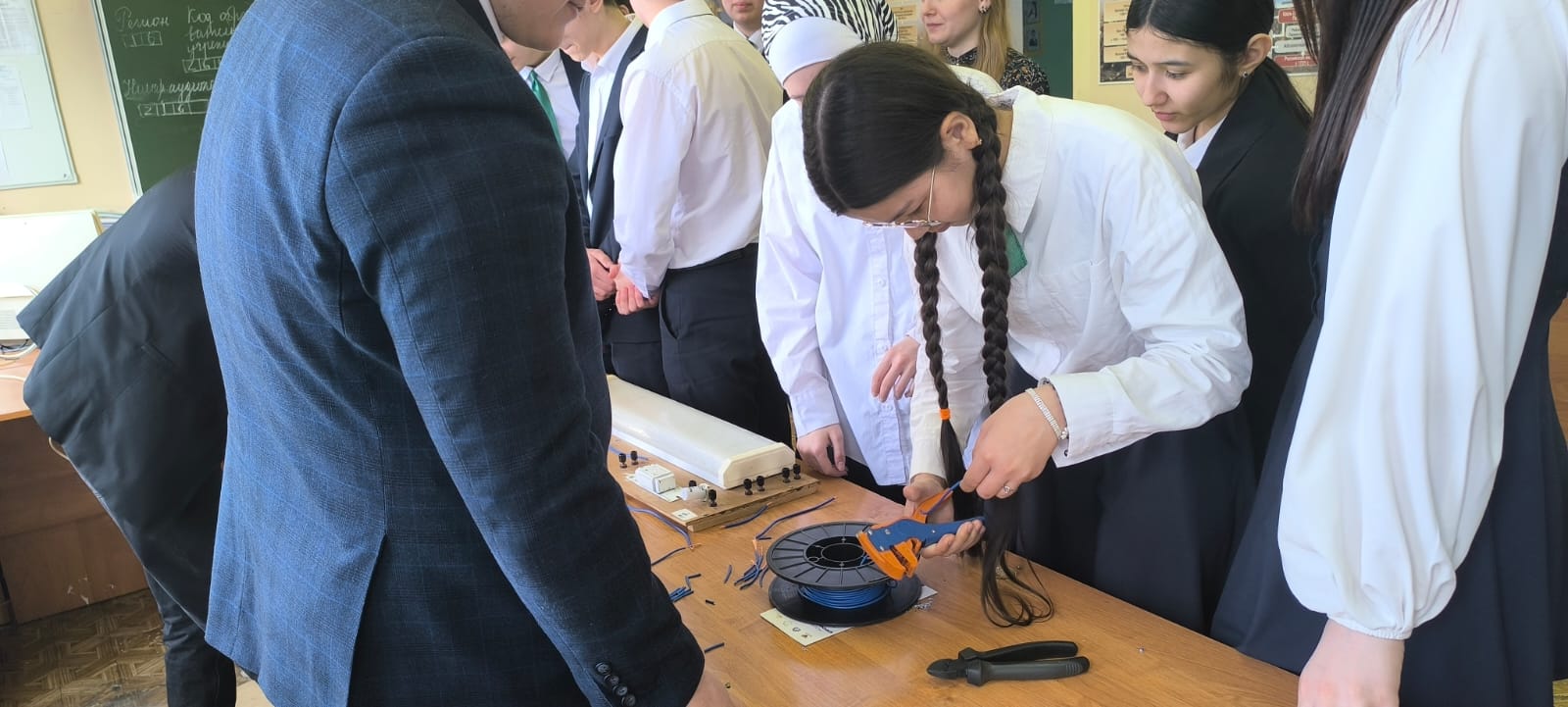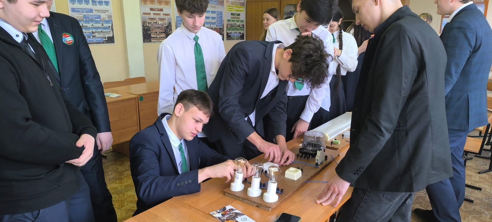 Кроме того, на практических занятиях девятиклассники познакомились с основами электротехники. Они успешно собрали простую электрическую схему, и лампочки зажглись! Также учащиеся работали с предложенными деталями, создавая модели автомобилей «КАМАЗ».