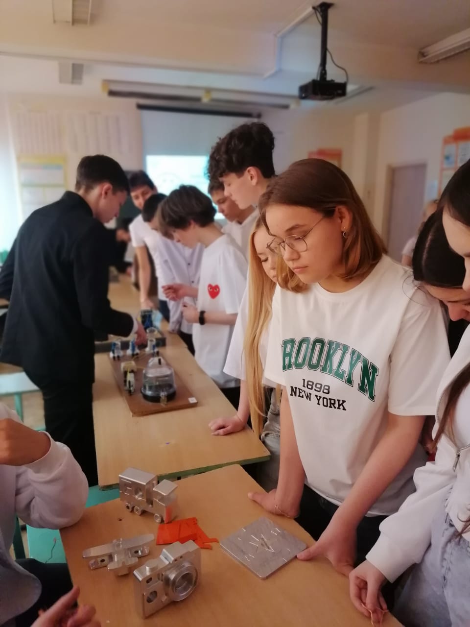 Хотя станок с ЧПУ в класс не привезёшь, студенты колледжа показали детали, выточенные на нём — модели самолётов, фотоаппаратов и даже автомобилей.