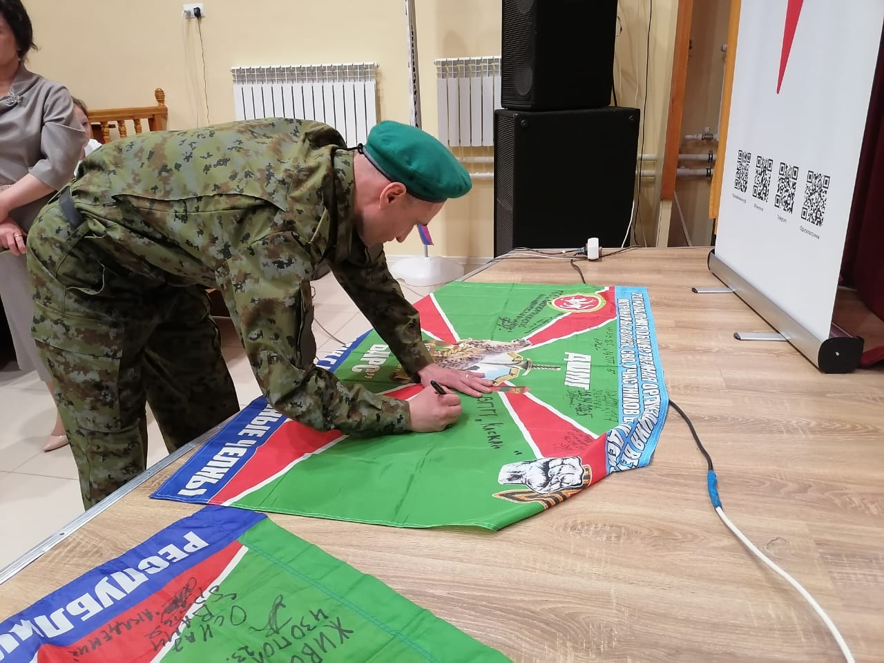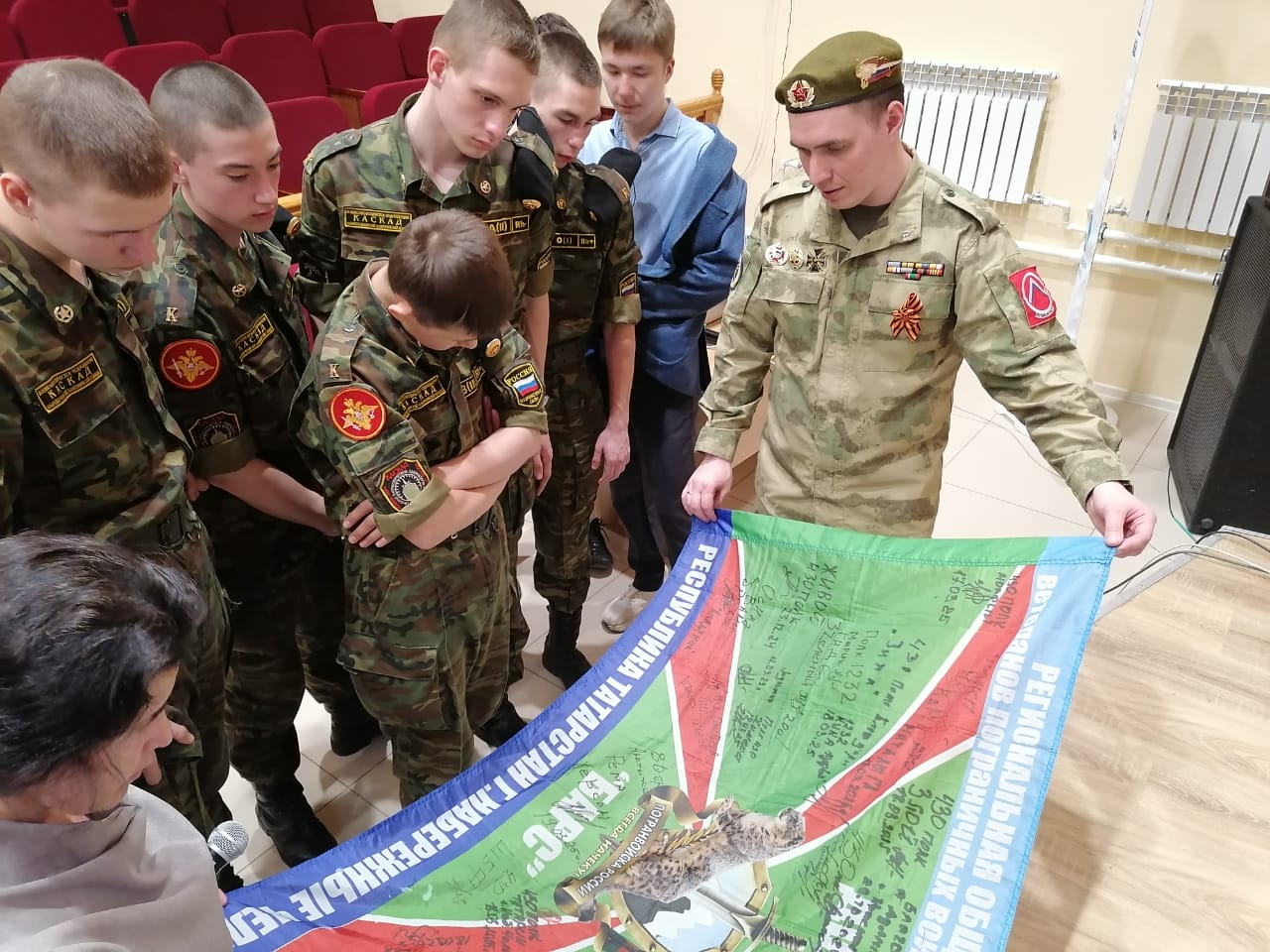 Он показал кадетам свой боевой флаг, который прошёл с ним через войну, а теперь становится исторической реликвией. Также у него есть флаг с пожеланиями от более чем 100 учебных заведений. Среди них теперь есть слова и от НПК.