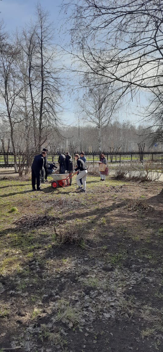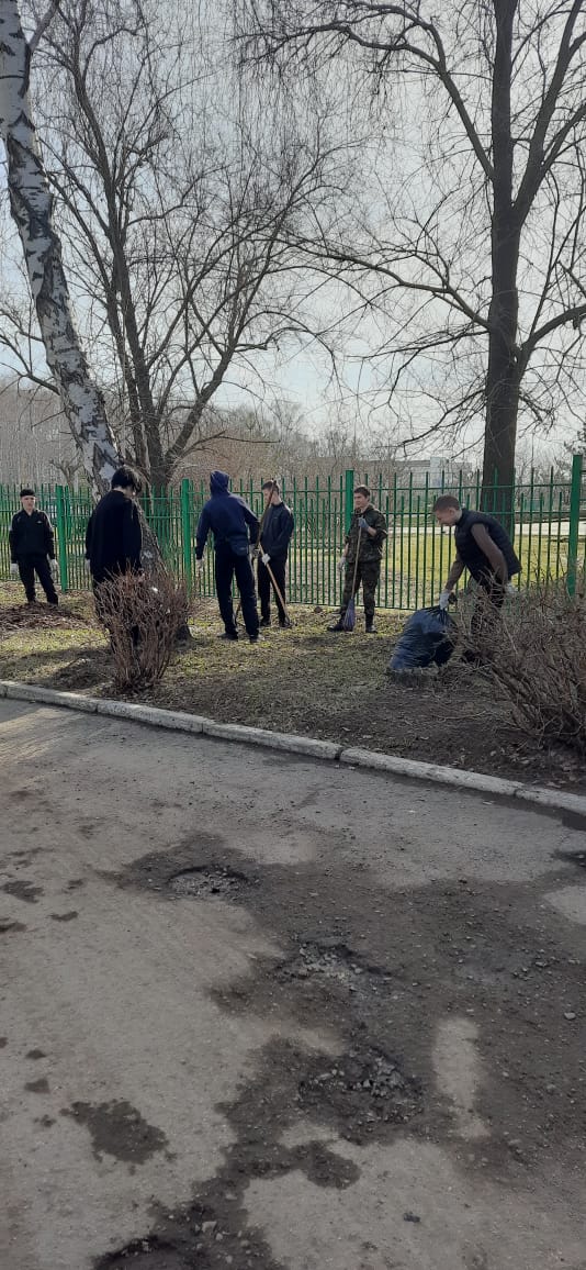 15 апреля студенты группы Ф-5/6 занимались уборкой опавшей листвы, окапыванием деревцев и кустарников на территории колледжа возле учебного корпуса и мастерских