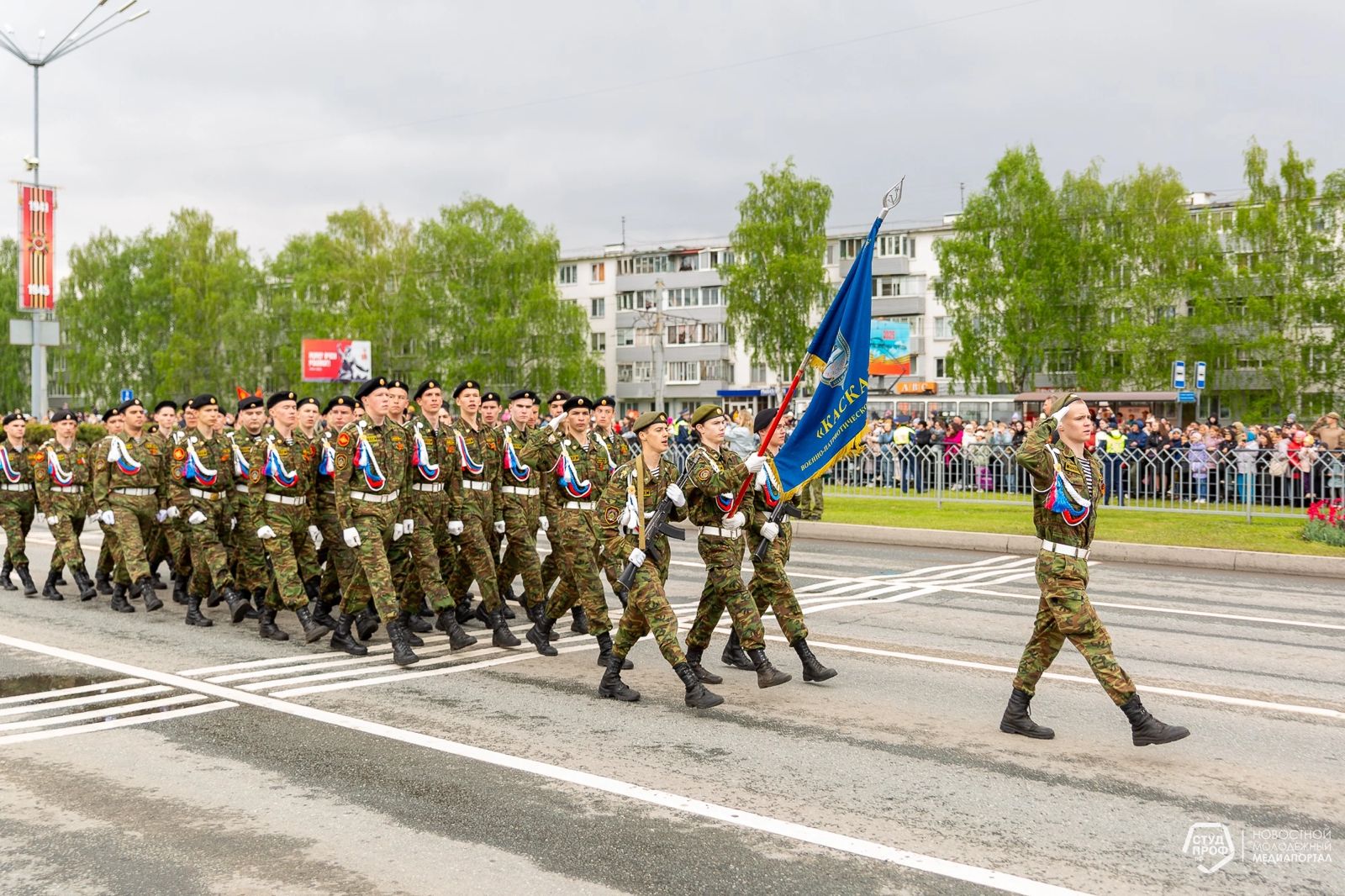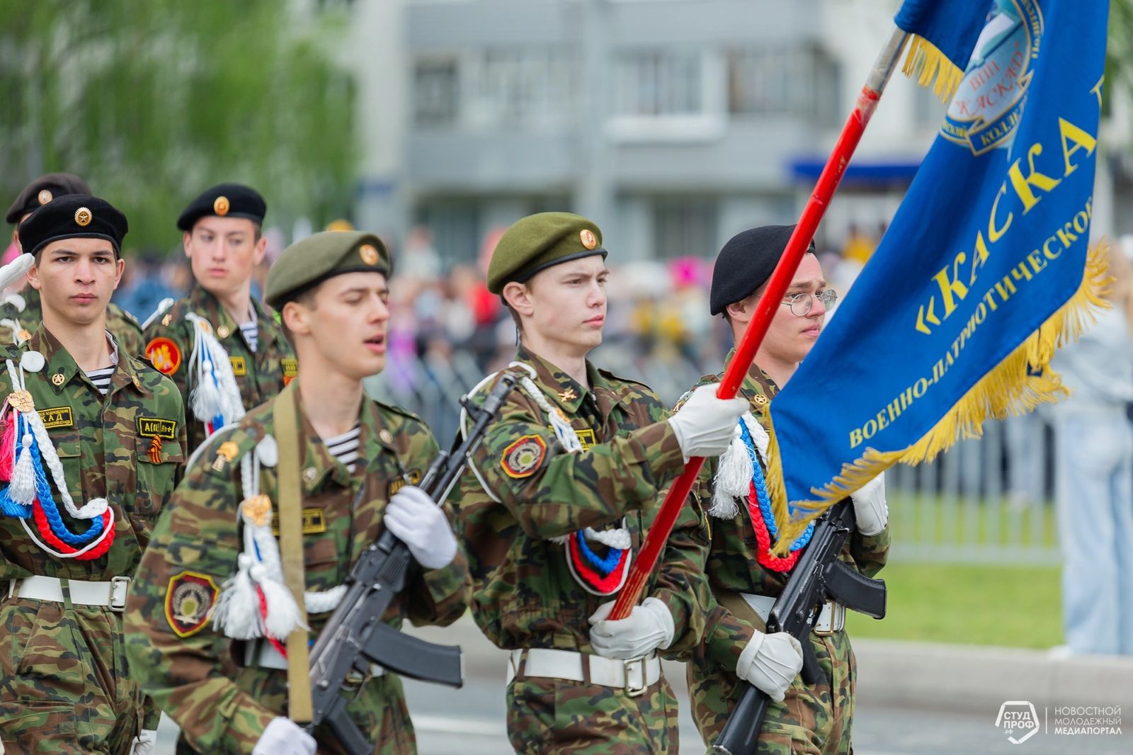 Почетную миссию открыть праздничный парад предоставили учащимся кадетских школ и кадетам военно-патриотического подразделения "Каскад", созданного на базе Набережночелнинского политехнического колледжа. Более того, четверым из них выпала особая честь: нести флаг города Набережные Челны. Это кадеты Тулбаев Марсель (командир знаменной группы), Ермолов Александр, Рахматуллин Ратмир, Валиев Юрий.