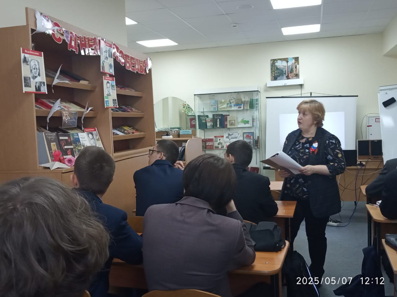 Библиотекарь колледжа Оксана Юрьевна Дьячкова организовала для студентов тематическое мероприятие. В ходе встречи участники обсуждали художественные произведения о войне, что позволило глубже осмыслить подвиг советского народа и важность сохранения исторической памяти.