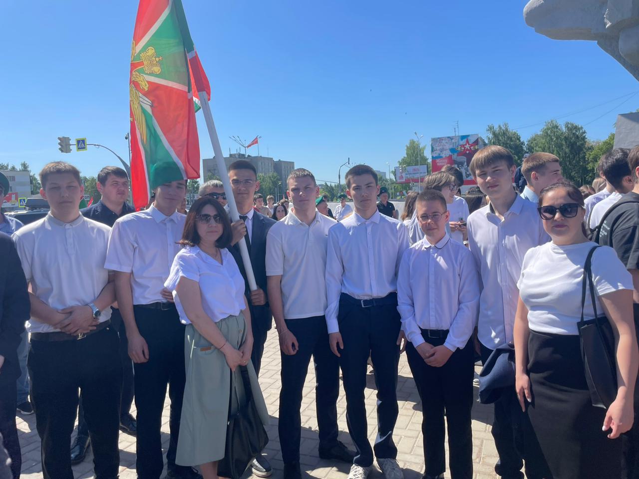 Торжественный митинг начался с возложения цветов к Вечному огню в честь погибших защитников рубежей страны. Участие в мероприятии приняли и студенты группы ТЭ-23 Набережночелнинского политехнического колледжа, которые почтили память героев.