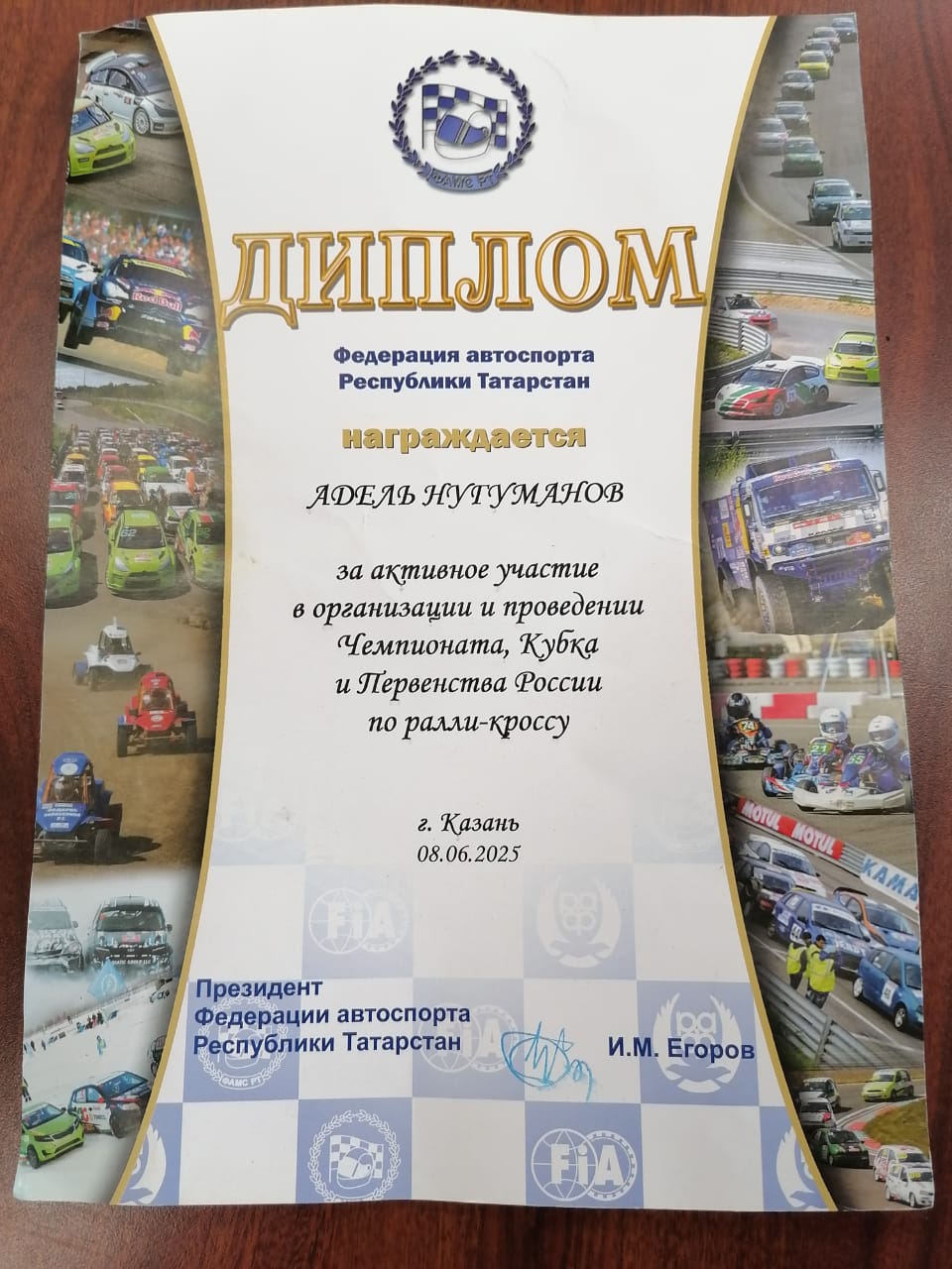 За активное участие в проведении соревнований Адель Нугуманов награждён дипломом. Поздравляем его с наградой и желаем новых достижений в автоспорте!