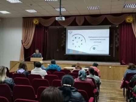 17 и 18 октября 22022 года на базе школ №13 и 47 были проведены собрания для родителей учащихся 9-х классов по теме "Профессионалитет. Профессиональное самоопределение основа успешности". Директор колледжа Ильдар Махмутович Ганиев раскрыл суть Федерального проекта, презентовал программы Профессионалитета, реализуемые на базе ГАПОУ "Набережночелнинский политехнический колледж" с сентября 2023 года.