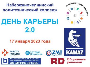В рамках деятельности Службы содействия трудоустройству выпускников и студентов колледжа и в соответствии с программой популяризации Федерального проекта "Профессионалитет" в Республике Татарстан 17 января на базе Набережночелнинского политехнического колледжа состоялось комплексное профильное мероприятие в рамках Федерального проекта "Профессионалитет" – "День карьеры".