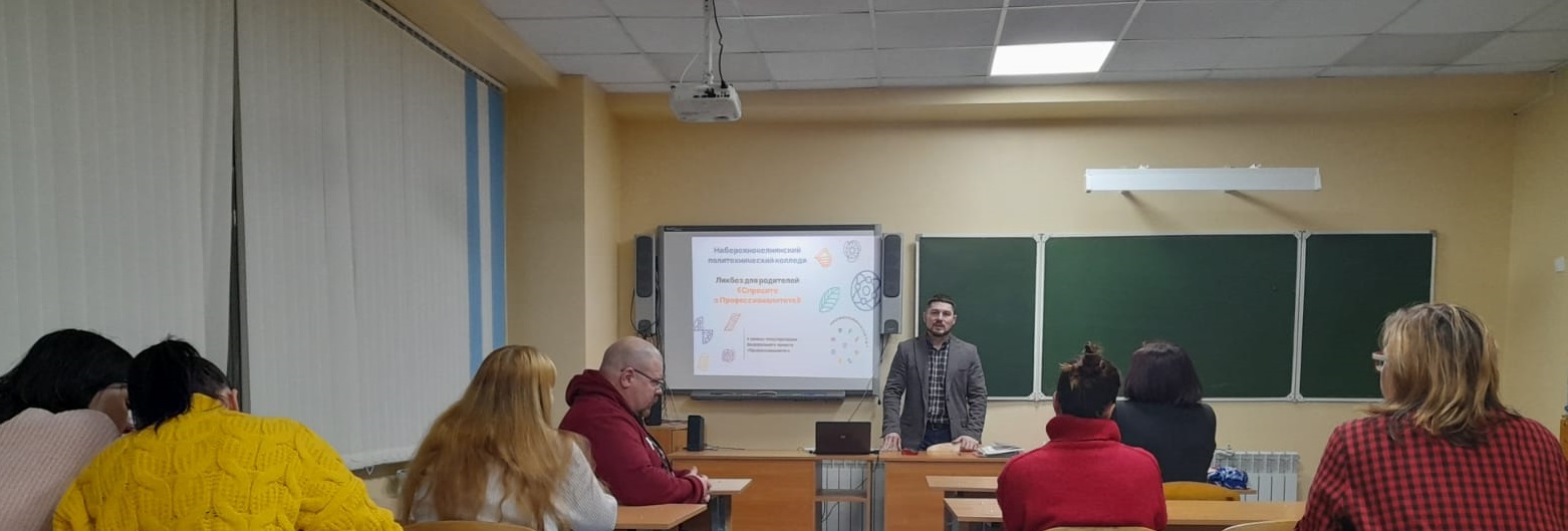 26 января 2023 года на базе Набережночелнинского политехнического колледжа согласно плану реализации программы популяризации федерального проекта "Профессионалитет" в Республике Татарстан состоялся ликбез для родителей на тему "Спросите о профессиналитете".