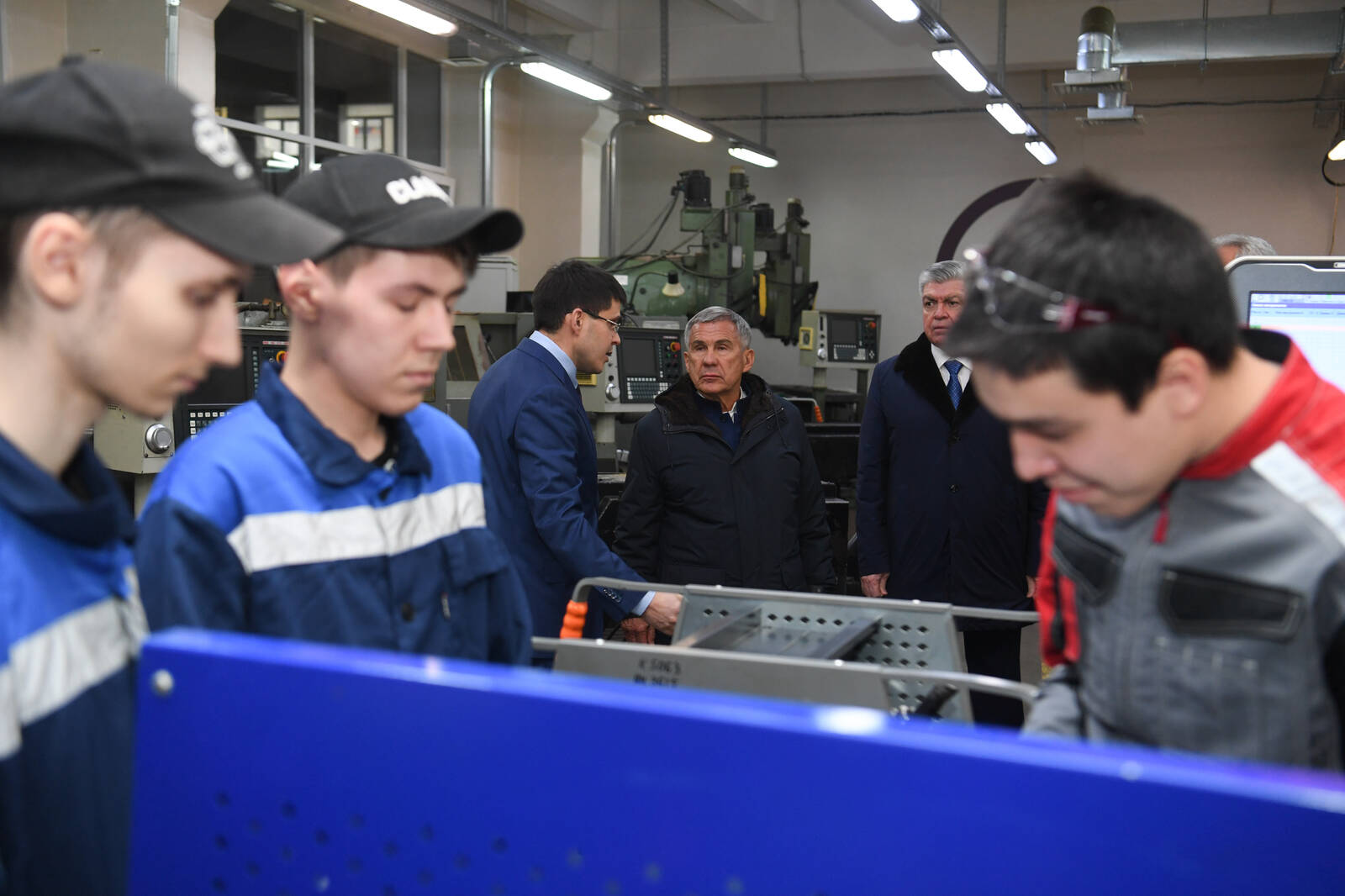 Рустам Минниханов осмотрел учебные кабинеты, лаборатории материаловедения, программного управления станками, учебно-производственные мастерские и сварочный полигон.