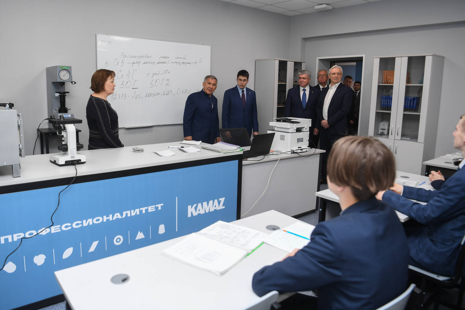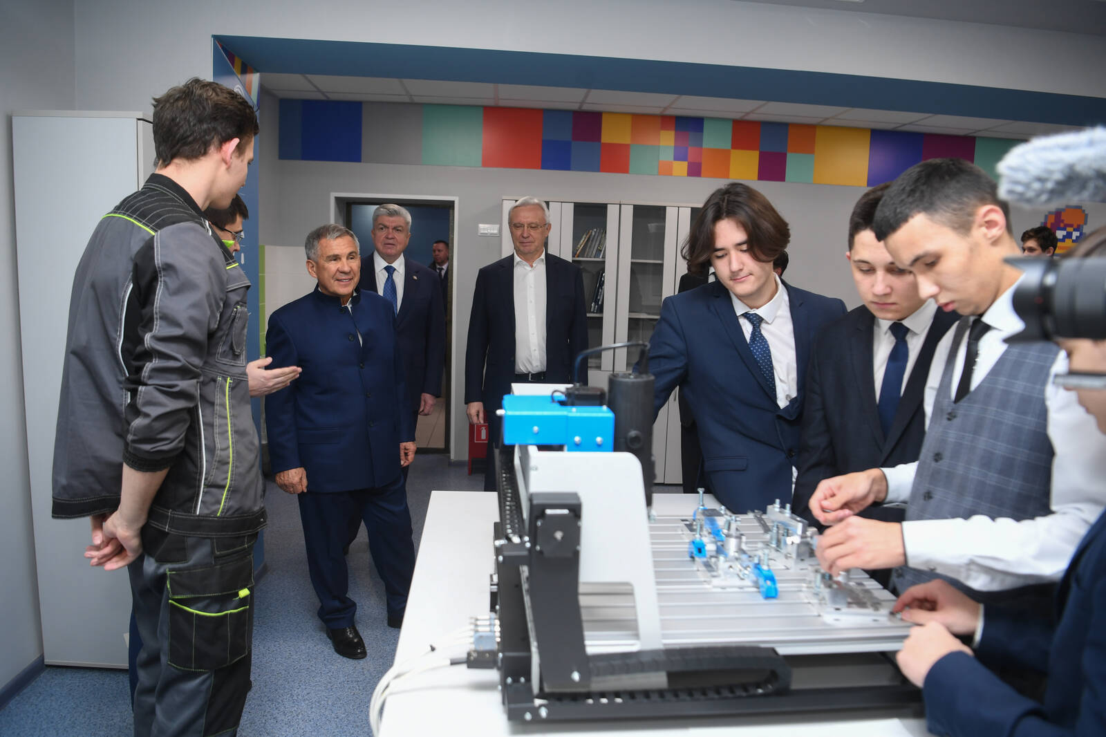 Набережночелнинский политехнический колледж посетил Раис Татарстана Рустам Минниханов. Его сопровождали мэр Набережных Челнов Наиль Магдеев и генеральный директор ПАО «КАМАЗ» Сергей Когогин.