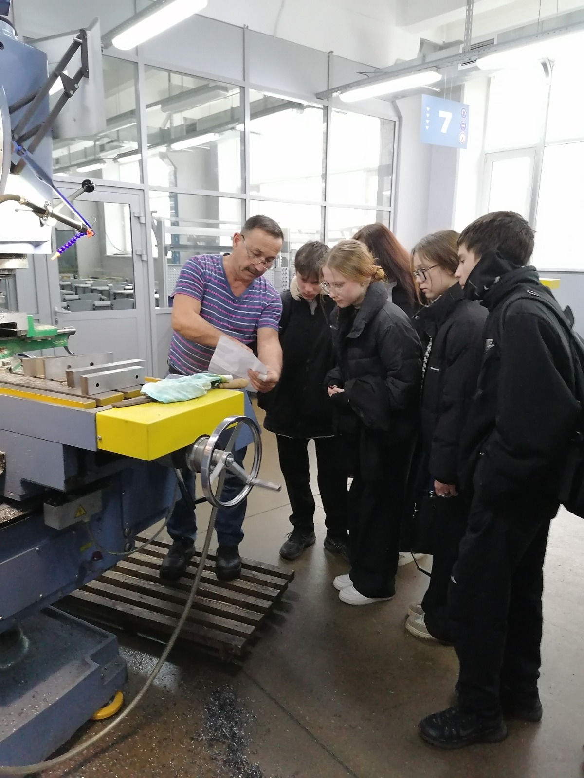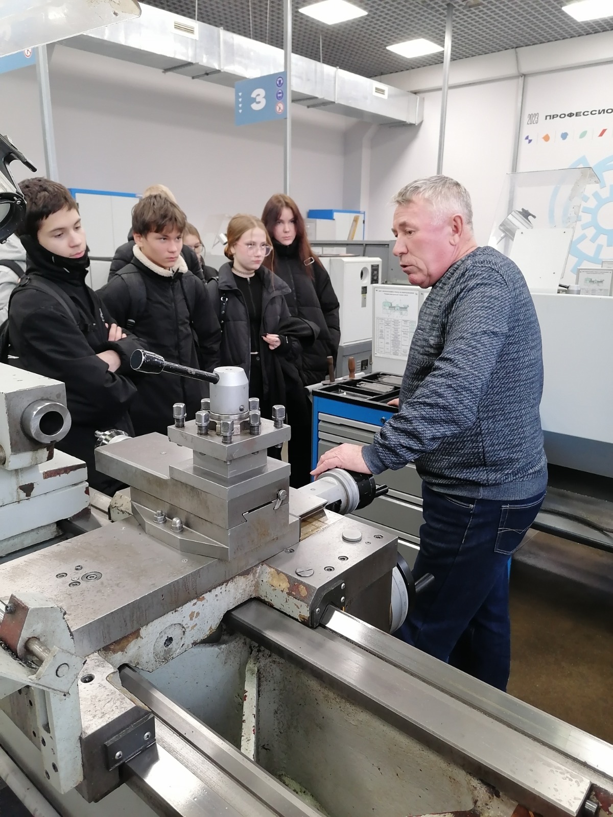 Неизгладимое впечатление оставила экскурсия по учебно-производственному корпусу. Ребята посетили мастерские с токарными, фрезерными станками и станками с ЧПУ, сварочные посты. Мастера производственного обучения продемонстрировали как работают станки, и что можно на них произвести.