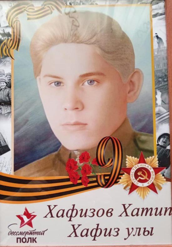 Хафизов Хатип Хафизович родился 5 ноября 1927 года в селе Старое Бикчантаево Актанышского района. В 14 лет, окончив 7 класс, устроился в колхоз и проработал там 2 года. Отучился на комбайнера и электрика. В 1944 году, еще не окончив детство, Хатип в 17 лет получил оружие. В горячие точки боя его не пускали. Он участвовал в подавлении банд на землях Латвии, Литвы, Эстонии. Награжден медалью "За победу над Германией". С военной службы Хатип Хафизов вернулся в деревню в мае 1951 года. С тех пор жил в Старом Бикчантае. Женился на любимой девушке и вырастил 5 прекрасных дочерей. В колхозе "Игенче" работал электриком, комбайнером и трактористом. В 1987 году Хатип Хафизович вышел на заслуженный отдых. Умер 2 марта 2011 года. Похоронен в своей родной деревне.