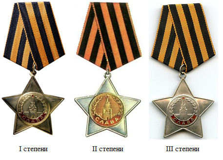 О́рден Сла́вы — военный орден СССР, учреждён Указом Президиума Верховного Совета СССР от 8 ноября 1943 «Об учреждении ордена Славы I, II и III степени». Орденом награждались военнослужащие рядового состава, сержанты и старшины Красной Армии, а в авиации — и лица, имеющие звание младшего лейтенанта. Вручался только за личные заслуги, воинские части и соединения им не награждались.