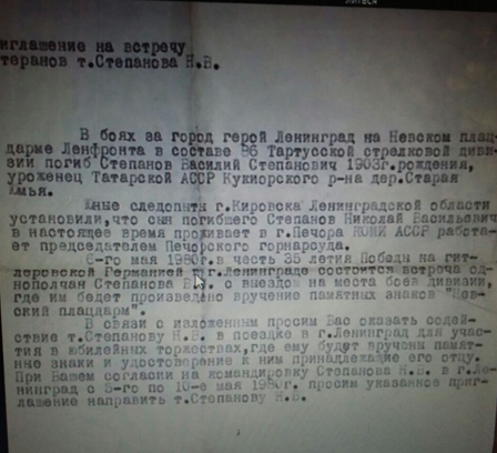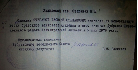 Еще до ВОВ Василий Степанович женился, родились дети. Его сын Степанов Михаил Васильевич в 1980 году ездил в Ленинградскую область на встречу ветеранов Невского пятачка, где получил за отца нагрудный значок "Невский плацдарм".